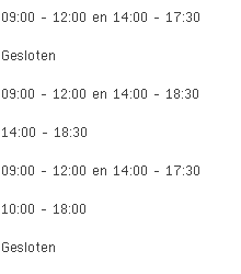 Koopzondagen, koopavonden en openingsuren voor de overige dagen deze week en volgende week kan je vinden in de tabel bovenaan deze pagina.