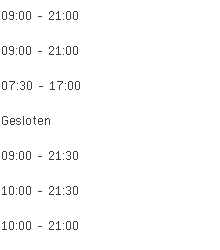 Koopzondagen, koopavonden en openingsuren voor de overige dagen deze week en volgende week kan je vinden in de tabel bovenaan deze pagina.