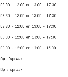 Boekhoudkantoor Verlinden aan de Brusselsesteenweg 119A in Zemst is vandaag geopend van 08:30 tot 12:00 en vervolgens van 13:00 tot 17:30.