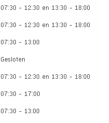 Brood en Banket De Smet Wouter aan de Klakvijverstraat 22 in Grimminge is vandaag geopend van 07:30 tot 12:30 en vervolgens van 13:30 tot 18:00.
