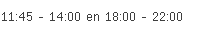 Chez Gaby aan de Chaussée de Dinant 930 in Wépion is vandaag geopend van 11:45 tot 14:00 en vervolgens van 18:00 tot 22:00.