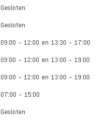 Koopzondagen, koopavonden en openingsuren voor de overige dagen deze week en volgende week kan je vinden in de tabel bovenaan deze pagina.