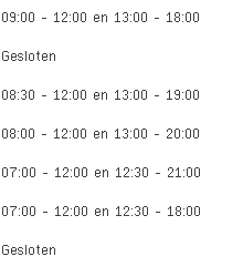Koopzondagen, koopavonden en openingsuren voor de overige dagen deze week en volgende week kan je vinden in de tabel bovenaan deze pagina.
