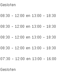 Exclusief Dirk aan de Gilainstraat 22 in Tienen is vandaag geopend van 08:30 tot 12:00 en vervolgens van 13:00 tot 18:30.