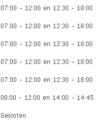 Gedimat Smets aan de Nieuwenrodestraat 13 in Wolvertem is vandaag geopend van 07:00 tot 12:00 en vervolgens van 12:30 tot 18:00.