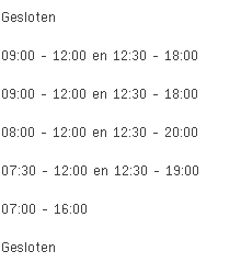 Koopzondagen, koopavonden en openingsuren voor de overige dagen deze week en volgende week kan je vinden in de tabel bovenaan deze pagina.