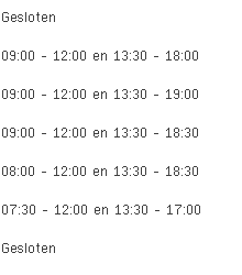 Koopzondagen, koopavonden en openingsuren voor de overige dagen deze week en volgende week kan je vinden in de tabel bovenaan deze pagina.