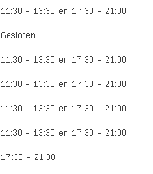 La Belle Doree aan de Rue de Plainevaux 31 in Seraing is vandaag geopend van 11:30 tot 13:30 en vervolgens van 17:30 tot 21:00.