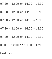 La Cloche aan de Avenue de Haussy 14 in Manage is vandaag geopend van 07:30 tot 12:00 en vervolgens van 14:00 tot 18:00.