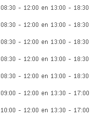 Koopzondagen, koopavonden en openingsuren voor de overige dagen deze week en volgende week kan je vinden in de tabel bovenaan deze pagina.