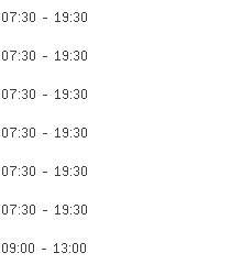 Open: 07:30 - 19:00