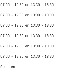 Prima aan de Hazeschransstraat 35 in Edegem is vandaag geopend van 07:00 tot 12:30 en vervolgens van 13:30 tot 18:30.