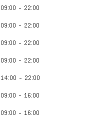Open: 09:00 - 22:00