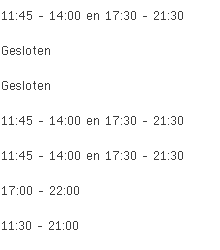 Openingsuren Restaurant Amu Turnhout