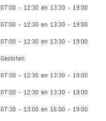 Simoens Marc aan de Iepersestraat 221 in Roeselare is vandaag geopend van 07:00 tot 12:30 en vervolgens van 13:30 tot 19:00.