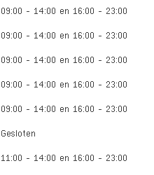 Openingsuren Snackbar Bellissimo Oostende